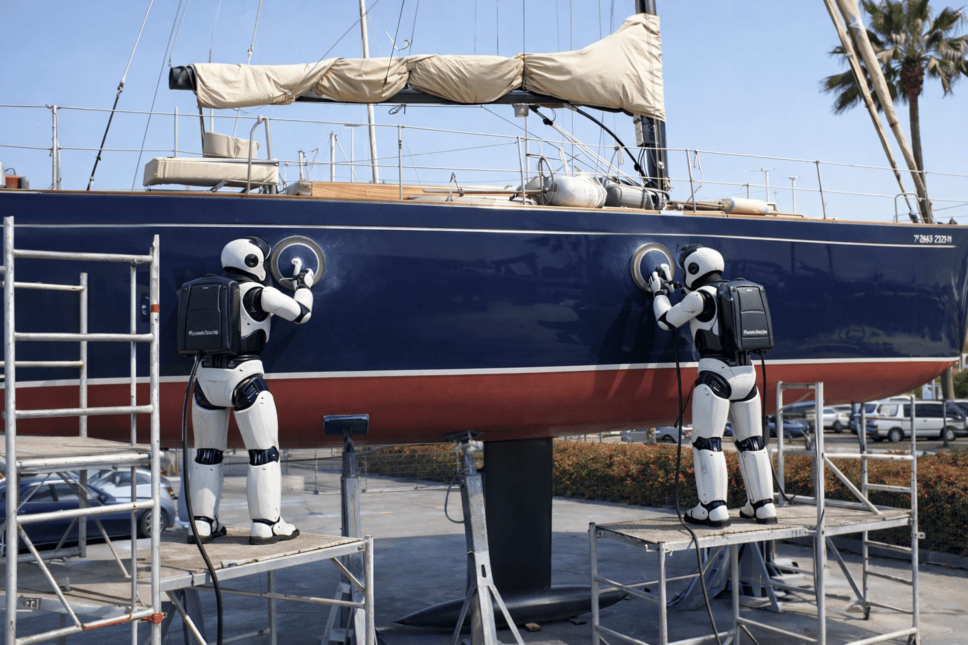 Precision robotic polishing systems used in yacht refit operations to restore gloss and finish on high-value vessel surfaces.